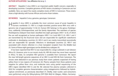 The Pasteur Center of Cameroon reports for the first time the nearly complete characterization of the hepatitis E virus (HEV)